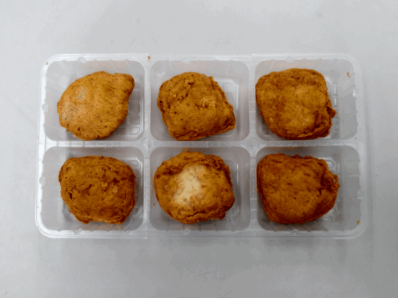 パッケージを開けると、「から揚げ」が6個、プラスチックのトレイに入っています。