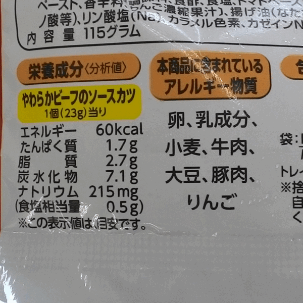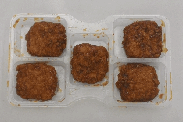 電子レンジで温めている上に、ソースもしっかりかかっているので、衣のサクサク感はあまり感じられません。