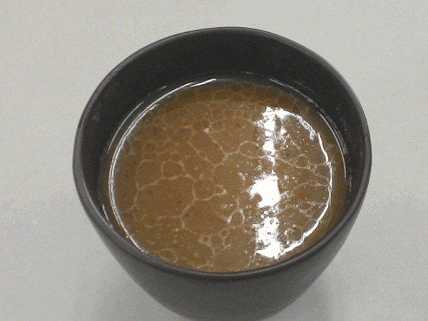 液体スープと魚粉パックを熱湯100mlで溶かします。