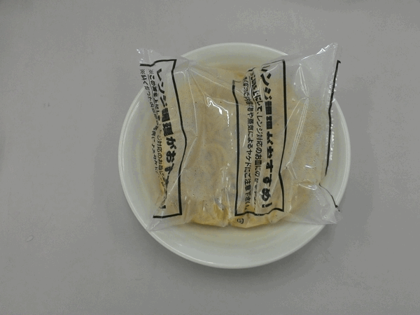 次に、麺をお皿に乗せて内袋のまま温めます。