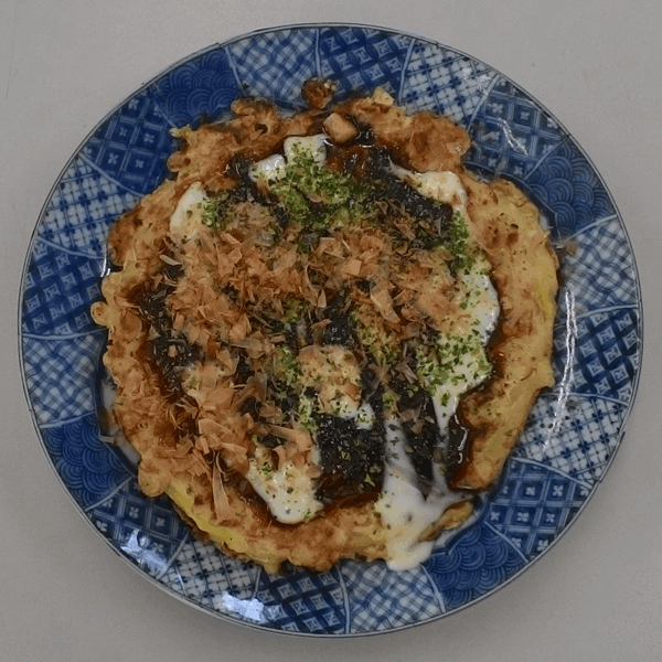 ソース、かつおぶし、あおさ、マヨネーズをかければ完成です。