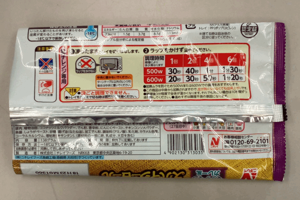 調理法は電子レンジでそのまま温めるだけ。(ラップはかけない)