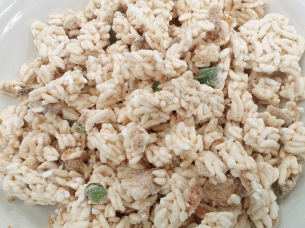 加熱前に確認すると、ご飯が固まっていました。この場合は、ほぐしてから加熱します。