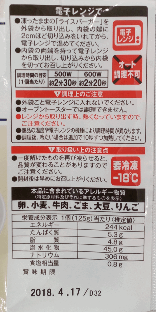 ▼ ライスバーガー 1個入:ローソン(2016年4月9日)